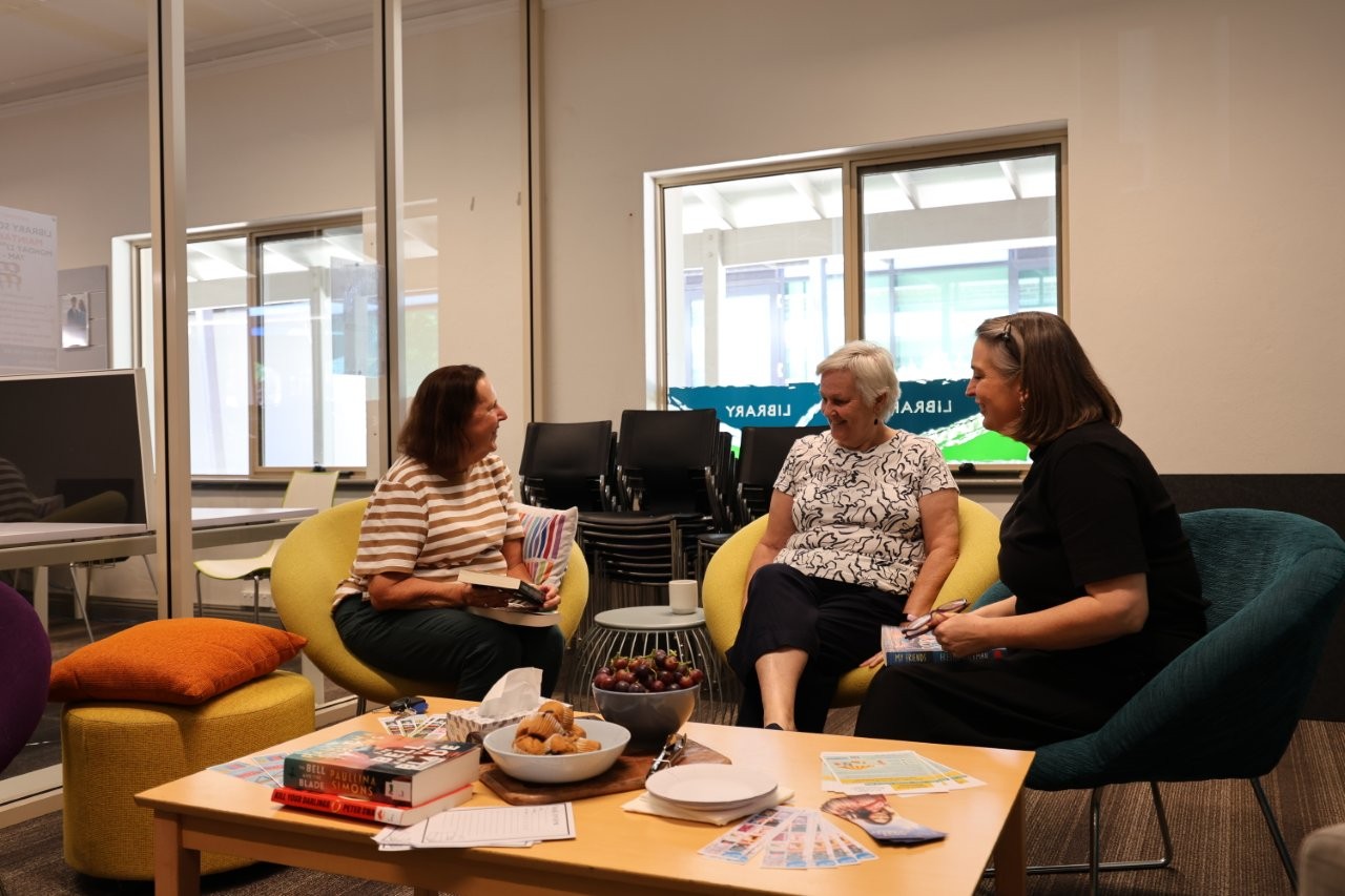 Photo for general use: Book chat session at the Busselton Library’s new multi-use space.