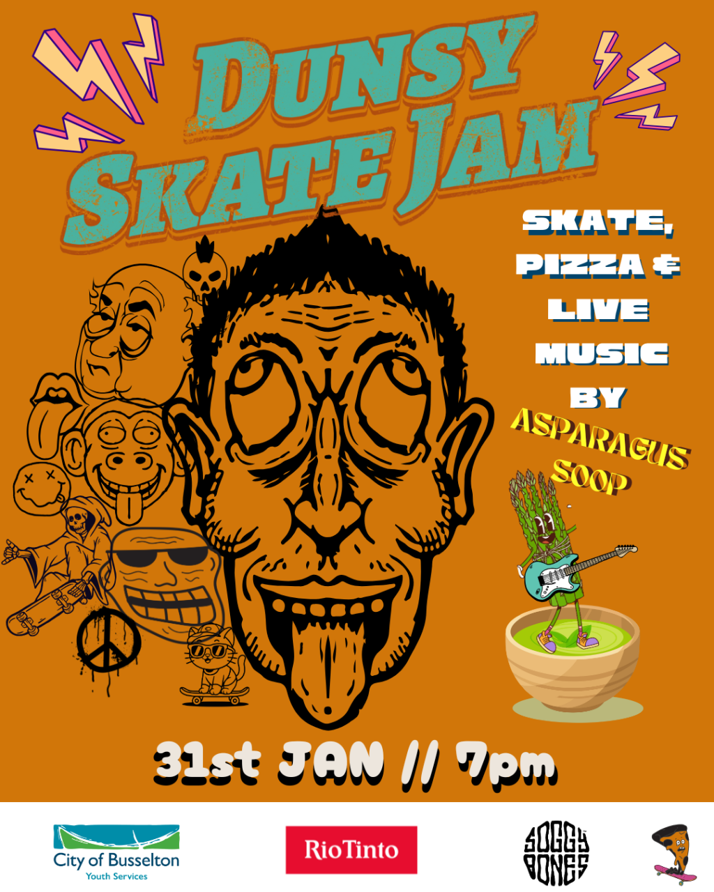Free pizza and live music by Perth rock band Asparagus Soop.