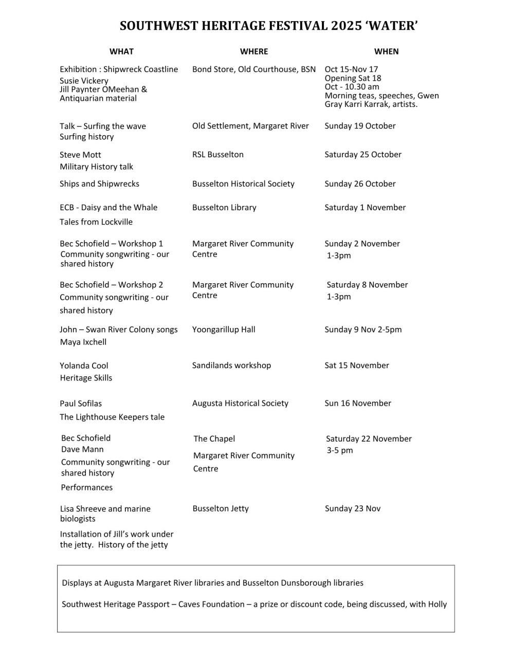 History and heritage comes alive during the month of October. Proudly supported by the City of Busselton’s Event Sponsorship Program.