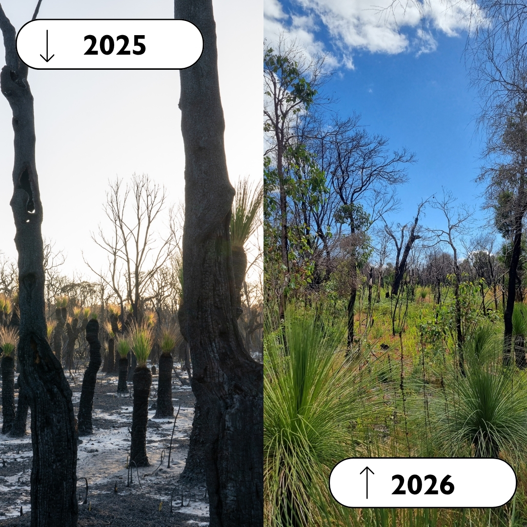 As the landscape continues to bounce back, temporary fences along Marri Drive and Naturaliste Terrace have now been removed, allowing public access to return along the internal limestone fire access tracks. This marks an exciting milestone in the reserve’s recovery and gives visitors the opportunity to once again experience the area’s natural beauty.