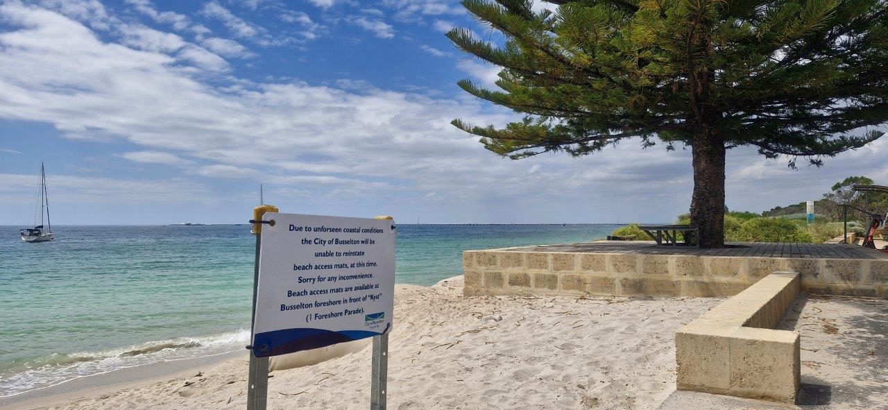 Due to unforeseen coastal conditions, the City is unable to reinstate the beach access mats at King Street, Busselton.