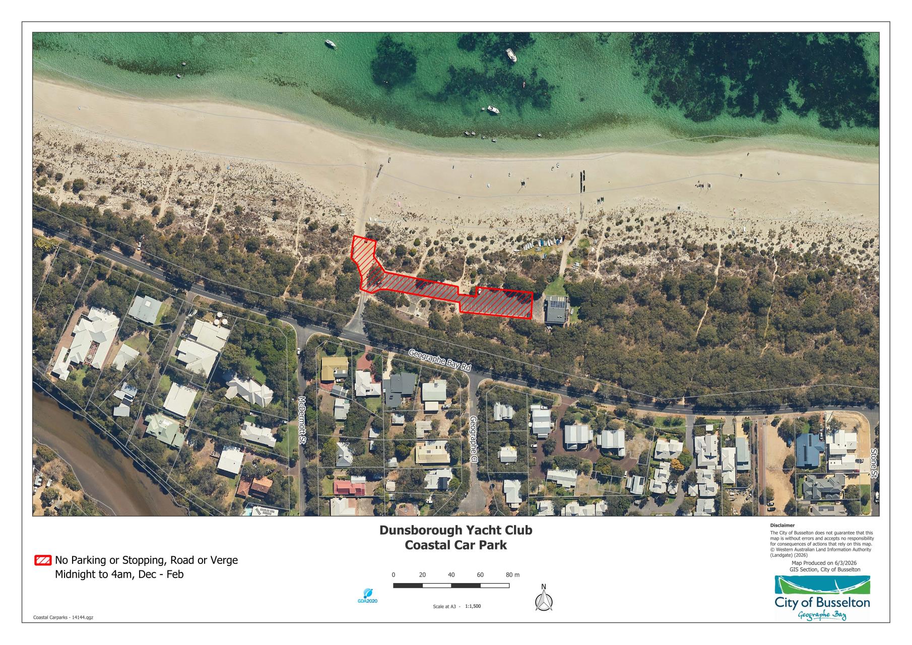 Pursuant to clause 2.1 of the City of Busselton Parking Local Law 2020, the City provides notice of its intention to implement the following parking restrictions at Quindalup Boat Ramp, Dunsborough Yacht Club and Abbey Boat Ramp.
