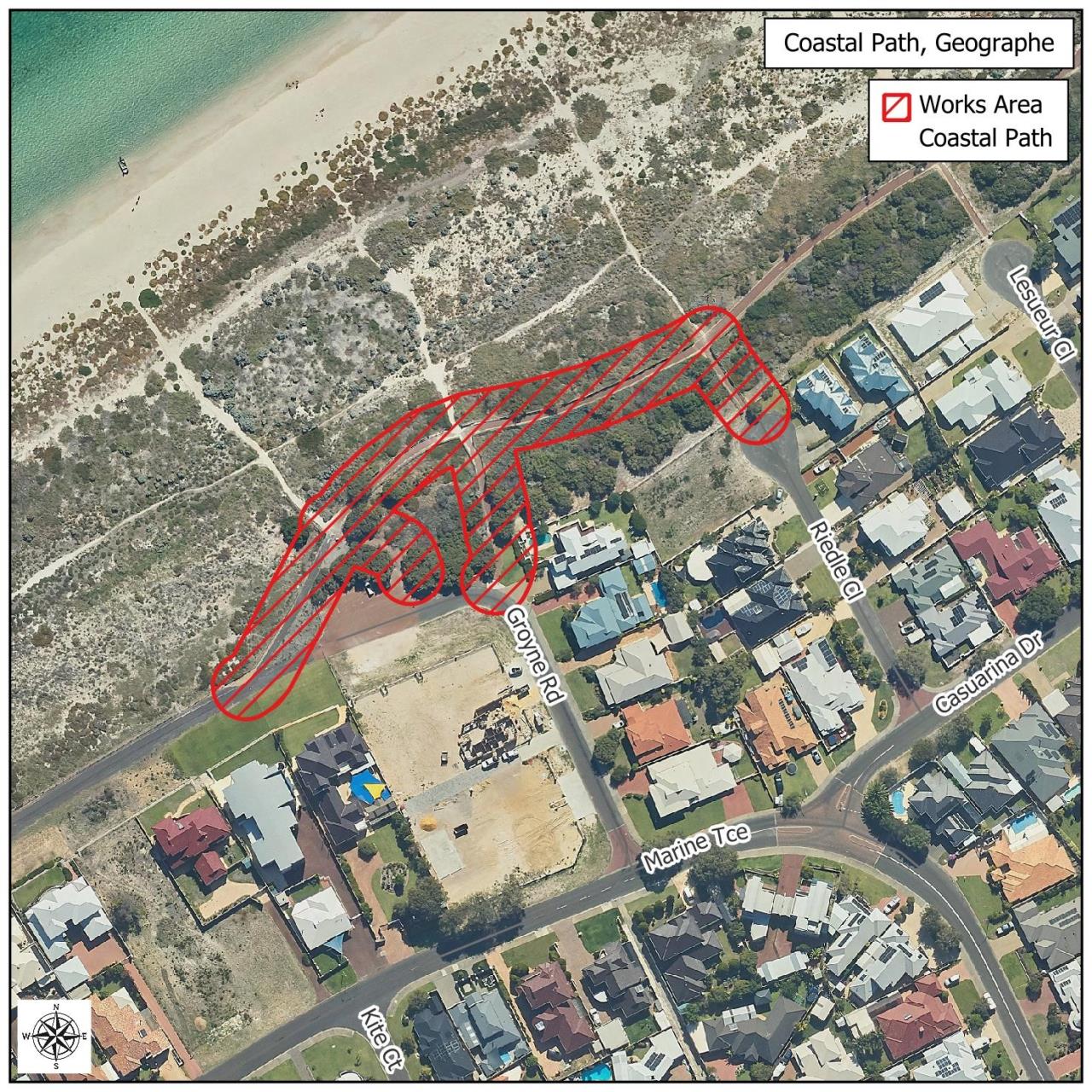 The City of Busselton will be undertaking footpath replacement works at Geographe Park Beach, between Freycinet Drive and Groyne Road.