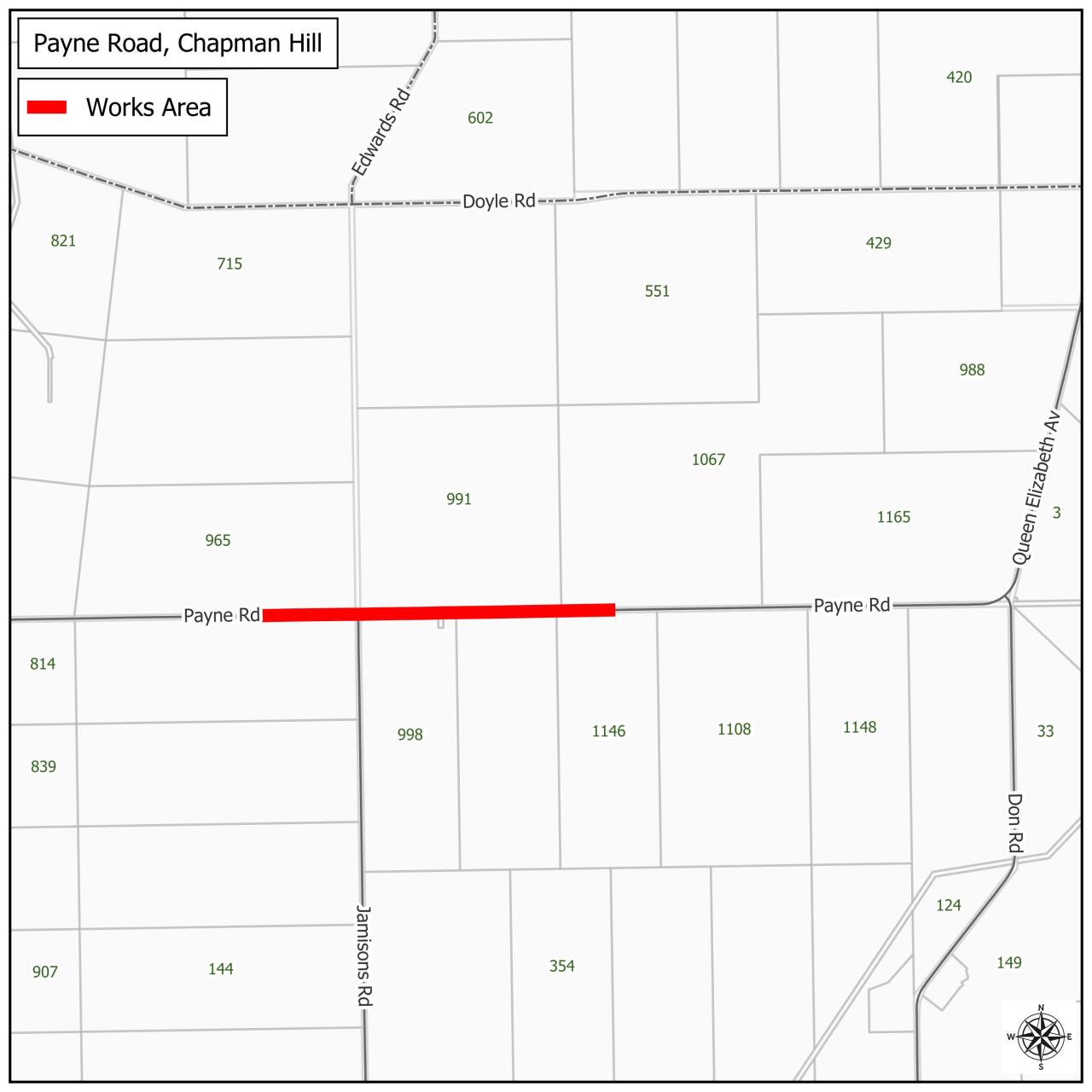 Local access to properties along Payne Road will be maintained at all times throughout the works. Residents, visitors and service vehicles will be able to approach the traffic controllers, advise who they are and the property they are accessing, and will then be permitted through when safe to do so. While access will be maintained, some minor delays may occur due to construction activities and traffic management.